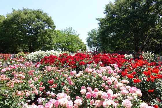 砧公園のバラ園では、季節になると色とりどりのバラを見ることができます。見ごろとなる初夏には素敵なお花が咲き、美しい景色を楽しむことができます。