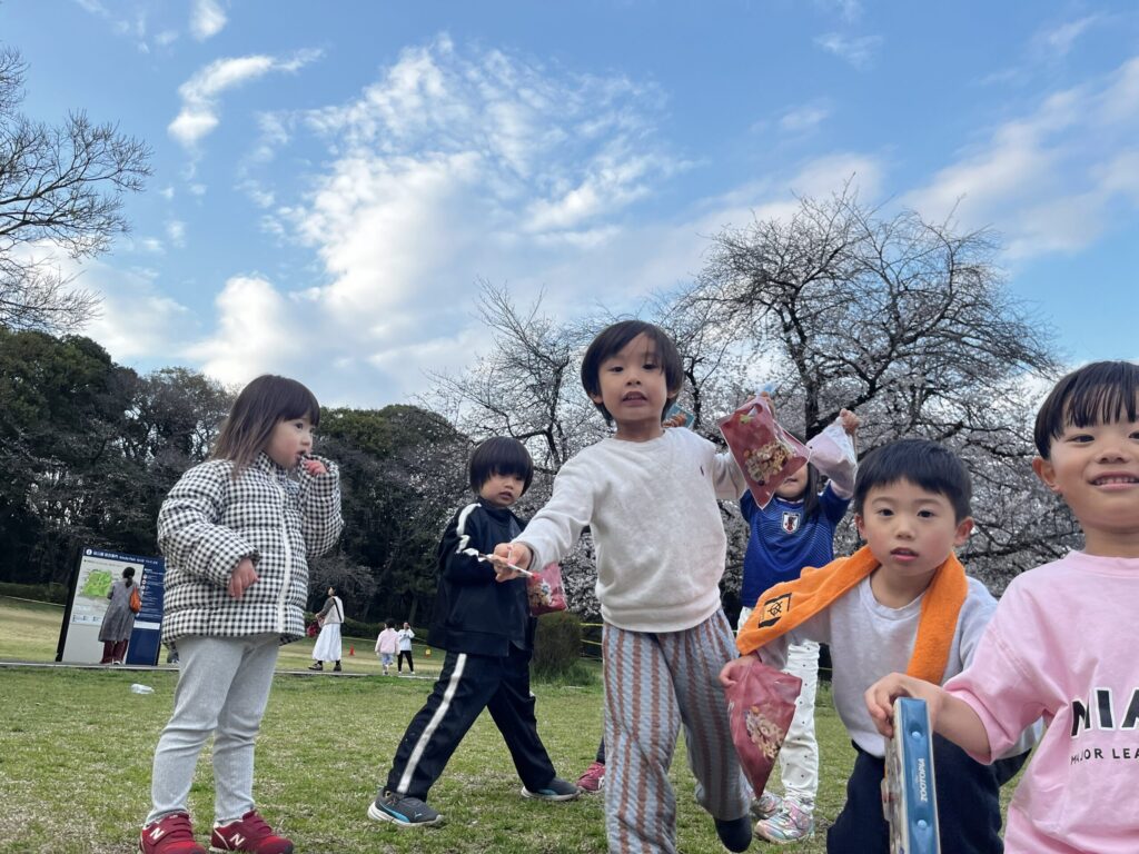 桜咲く綺麗な砧公園の中で、また、少しドキドキわくわくな春休みの中、たくさんのお友達が遊びにきてくれました。